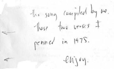 I love her tits-tittly-tits tittly-tits And her nut brown arse hole. I would eat her shit, Chomp, chomp, gobble, gobble With a rusty spoon, With a rusty spoon.