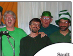 A SHORT HISTORY OF THE SAULT ANTLER'S MEN'S CHORUS SINGING RASTY DRINKIN' HYMNS I tended bar at the Antler's Bar in Sault Ste. Marie, Michigan, in 1970. A Coast Guard 4 striper (Captain) was a regular in the bar. He said he would help me fulfill a fantasy I had since living in Niagara Fall, Ontario. I lived in a cottage on the Canadian side of Lake Erie, near Niagara Falls, from 1965 to 1968, and I was the only American living with a large group from around the world. On weekends, we would travel all over the Niagara Frontier, singing our way into the hearts and beer of all we met. The songs we sang were aptly described as Rasty Drinkin' Hymns, and we were welcomed where ever we went. Now back to my fantasy. I thought if my Coast Guard Captain friend could get me an Able Body Seaman license, I could ship on a lake freighter going through the Sault Locks, and teach a captive crew an hour or so of Drinkin' Hymns. We would jump ship in Detroit or Cleveland, find a recording studio, and make an album of Rasty Drinkin' Hymns. Alas! This never came to be. Fast forward to 1977 in Gettysburg, Pa. I was in the Springhouse Tavern, in the Dobbin House on Steinwehr Ave in Gettysburg, and there were two guys playing a guitar and a piano. During a break in their act, and still carrying my fantasy where ever I went, I asked them if they would like to make an album of Drinkin' Songs. Sean Tschop and Ray Owen took about 1 1/2 to 2 seconds and shouted YES! The Sault Antler's Men's Chorus was born. The name is, of course, from the Antler's Bar in the Sault, where I first had the fantasy. We gradually added members, and our membership in the Antler's had absolutely no requirement of talent or ability. We did and do have musicians in the group, and they do know who they are. It's just that no one has ever cared. During one of our practices, early in our career, there was a young lady in my basement making homemade beer for the group. One of our songs requires a very high, seductive voice, to sing "what color." We asked Jose Swisher Pelc to come up and sing this part for the song. From this moment on, Josie has certainly been the exception to the "Men's Chorus" aspect of the Antler's. Our first album was recorded in 1979, at the Antler's Bar in Sault Ste. Marie, Michigan. We flew from Baltimore to Detroit to Pelston, Mi, and onto the Sault. This was not a sobering event in our lives. One of our stalwarts claimed he was drunk and sober 3 times before we got on the first airplane. Ray Owen put his finger in a blood pressure machine at Detroit Airport, and the machine told him he was dead. This album was done on virgin vinyl, and the vinyl was the only virginal thing about the entire album. For 27 years the Sault Antler's Men's Chorus has been singing to Standing Room Only crowds every St. Patrick's Day in Gettysburg, and occasionally we have been known to sing on the 17th of September, which is half way before or after St. Pat's day. For 27 years we have preserved and protected the Drinkin' Hymn for future generations of singing drinkers or drinking singers. Seamus Garrahy