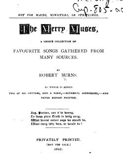 The merry muses : a choice collection of favourite songs gathered from many sources / by Robert Burns ; to which are added two of his letters and a poem—hitherto suppressed—never before printed. Publication Info. [S.L. : s. n.,; 1827 ca, [i.e. 1920?]] The above entry was copied from here http://libcat.csd.sc.edu/record=b2083740~S1