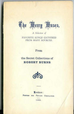 5) Burns' Merry Muses. A Collection of Curious and Erotic Poems and favourite songs gathered from many sources, to which are added ten of his letters and a poem hitherto suppressed and never before printed. Privately printed. [Not for sale]. 1827. Limited edition to 200 copies, each numbered. $10.00 Description above is from Catalogue of Miscellaneous Books by Walter M. Hill, Chicago, Ill. Catalogue 20, May, 1907.