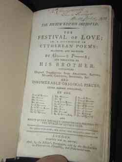 FESTIVAL of LOVE; OR, A COLLECTION OF CYTHEREAN POEMS: