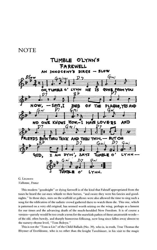 "Tumble O'lynn's Farewell" by Gershon Legman