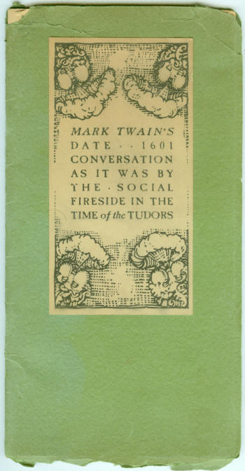 Now was Sir Walter minded of a tale he once did heare ye ingenious Margaret of Navarre relate about a mayd, which being like to suffer rape by an olde arch-bishop, did smartly contrive a device to save her maidenhedde, & said to him: "first, my Lord, prithee take out thy toole & pisse before me," which doing, Lo! his member fell & would not rise again. Many editions of this Mark Twain classic, "1601," have been printed by his and its admirers. Each purports to be the original, much to the confusion of the collector of first issues. For the average collector the actual first printing of this item must forever remain unobtainable. Those fortunate individuals who now possess the two or three known copies of the identic first are wealthy booklovers not apt to part with such treasures during their lifetimes. The inception of the story and its literary position are best given in the words of Mark Twain's able biographer, Albert Bigelow Paine, as follows: In his reading that year 1876 at the farm he gave more than customary attention to one of his favorite books, Pepys' Diary, that captivating old record which no one can follow continuously without catching the infection of its manner and the desire of imitation. He had been reading diligently one day, when he determined to try his hand on an imaginary record of conversation and court manners of a bygone day, written in the phrase of the period. The result was Fireside Conversation in the Time of Queen Elizabeth, or, as he later called it, "1601." The "Conversation," recorded by a supposed Pepys of that period, was written with all the outspoken coarse ness and nakedness of that rank day, when fireside sociabilities were limited only by the range of loosened fancy, vocabulary, and physical performance, and not by any bonds of convention. Howells has spoken of Mark Twain's "Elizabethan breadth of parlance," and how he, Howells, was always hiding away in discreet holes and corners the letters in which Clemens had "loosed his bold fancy to stoop to rank suggestion." "I could not bear to burn them," he declares, "and 1 could not, after the first reading, quite bear to look at them." In "1601" Mark Twain outdid himself in the Elizabethan field. It was written as a letter to that robust divine, the Rev. Joseph Twitchell, who had no special scruples concerning Shakespearian parlance and customs. Before it was mailed it was shown to David Cray, who was spending a Sunday at Elmira. Cray said: "Print it and put your name to it, Mark. You have never done a greater piece of work than that." John Hay, whom it also reached in due time (1880), pronounced it a classic—a "most exquisite bit of old English morality." Hay surreptitiously permitted some proofs to be made of it (see note), and it has been circulated privately, though sparingly, ever since. At one time (1882) a special font of antique type was made for it and one hundred copies were taken on hand-made paper. They would easily bring a hundred dollars each to-day. "1601" is a genuine classic, as classics of that sort go. It is better than the gross obscenities of Rabelais, and perhaps, in some day to come, the taste that justified Gargantua and the Decameron will give this literary refugee shelter and setting among the more conventional writings of Mark Twain. Human taste is a curious thing; delicacy is purely a matter of environment and point of view. In a note-book of a later period Clemens himself wrote: "It depends on who writes a thing whether it is coarse or not. I once wrote a conversation between Elizabeth, Shakespeare, Ben Jonson, Beaumont, Sir W. Raleigh, Lord Bacon, Sir Nicolas Throckmorton, and a stupid old nobleman—this latter being cup-bearer to the Queen and ostensible reporter of the tale. "There were four maids-of-honor present and a sweet young girl two years younger than the boy Beaumont. I built a conversation which could have happened — I used words such as were used at that time—1601. I sent it anonymously to a magazine, and how the editor abused it and the sender! But that man was a praiser of Rabelais, and had been saying, 'O that we had a Rabelais.' I judged that I could furnish him one.'* NOTE.—The following from The Saturday Evening Post (Philadelphia), October, 1903, corroborates Mr. Paine's statement: An early instance of that fine diplomacy which has made the name of John Hay famous throughout the world has just come to light in Cleveland. He was on terms of intimate friendship with the late Alexander Cunn—prince of connoisseurs of literature and art—and had sent him for perusal the manuscript of a little sketch by Mark Twain, unknown to collectors — Conversation as it was at the Social Fireside in the Time of the Tudors. This Mr. Hay described as a "serious effort to bring back our literature and philosophy to the chaste and Elizabethan standard." Mr. Cunn was pleased with the effort, and wrote to Hay, proposing to print a few copies for private circulation, to which he replied: "My Dear Gunn:—I have your letter, and the proposition which you make to pull a few proofs of the masterpiece is highly attractive, and, of course, highly immoral. I cannot property consent to it, and I am afraid the great man would think I was taking an unfair advantage of his confidence. Please send back the document as soon as you can, and if, in spite of my prohibition, you take these proofs, save me one." It is needless to say that with this hint the proofs were "pulled"—one for Hay and one for Cunn. |