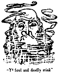 Then delivered he himself of such a god-lesse & rock-shivering blaste, that all were fain to stop their ears, and following it did come so dense and foul a stinke, that that which went before did seem a poor and trifling thing beside it. Then saith he, feigning that he blushed and was confused, 'I perceive that I am weake today & cannot justice doe unto my powers,' and sat him down as who should say, -- There, it is not much, yet he that hath an arse to spare, let him follow that, an' he think he can. By God, and I were ye Queene, I would e'en tip this swaggering bragggart out o' ye court, & let him air his grandeurs & breake his intolerable wynd before ye deaf & such as suffocation pleaseth.