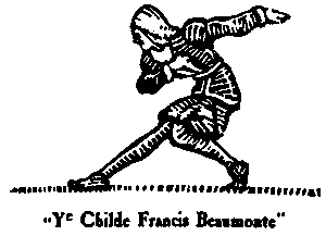 --------------------------------------------------------------------------- YESTERNIGHT TOOK Her Majestie, ye Queen, a fantasie such as she sometimes hath, and hadde to her closet certain that do write playes, bookes, and such like -- these being by Lord Bacon, his worship, Sir Walter Raleigh, Mr. Ben Jonson, & ye childe Francis Beaumont, which being but sixteen hath yet turned his hande to ye doing of ye Latin masters into our English tongue with great discretion and much applause. Also came with those ye famous Shaxpur. A right strange mingling of mightie blood with meane, ye more in especial since ye Queene's Grace was present, as likewise these following to wit: Ye Duchesse of Bilgewater, twenty-two years of age; ye Countess of Granby, thirty-six; her tower, ye Lady Helen; as also yet two maides of honor to wit: Ye Lady Margery Bothby, sixty-five; ye Lady Alice Dilbur, turned seventy, she being two years ye Queene's Graces elder. I, being Her Majestie's cup-bearer, had no choice but to remain & behold rank forgot, & ye high hold converse with ye low as upon equal termes, & a great scandal did ye world heare thereof. In ye heate of ye talke, it befel that one did breake wynde, yielding an exceeding mightie and distressful stinke, whereat all did laffe full sore, and then: