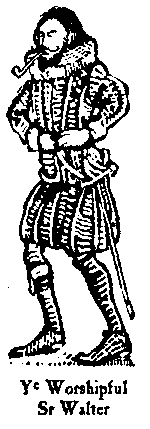 Then there was a silence, & each did turne him toward ye worshipful Sir Walter Raleigh, that browned, embattled, bloudy swashbucker, who rousing up did smile and simpering say: