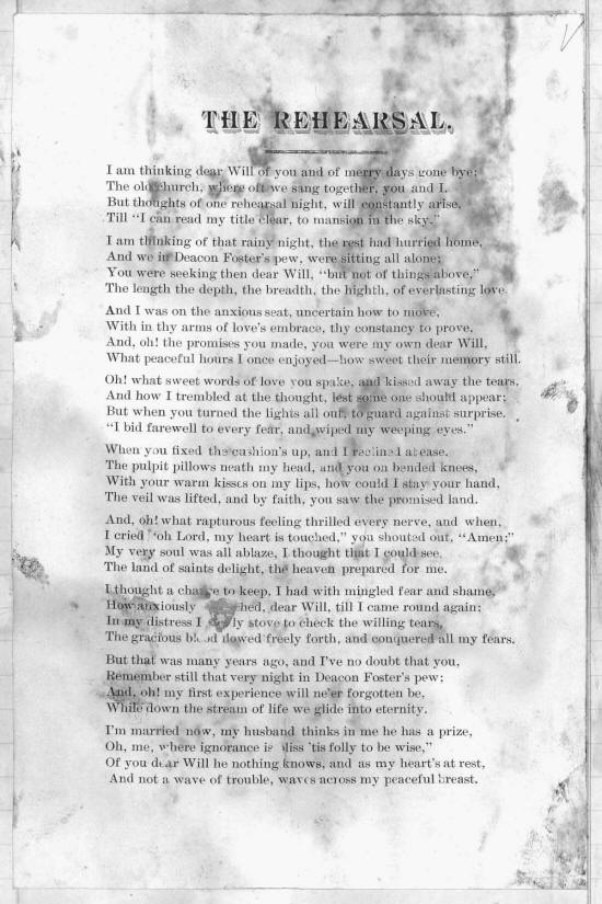 Yet still dearest darling if you think it best I'll stop for a while and give you a rest I heard him roll over, she cared to weep 1 listened a moment and then fell asleep.