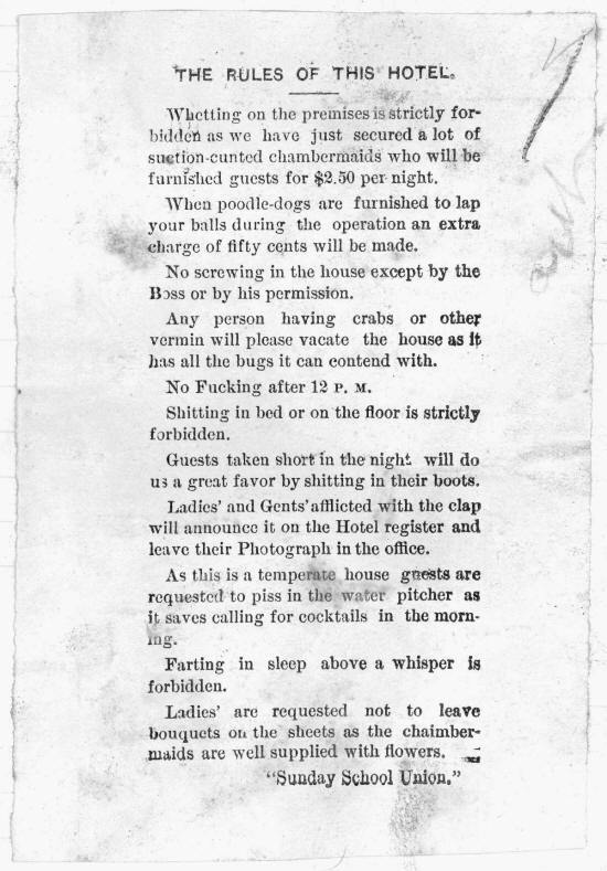 For breach of promise she was sued, For biting the prick off the Skeleton Dude. To cram Dr. Talmage once she tried, &he crammed Ben Tf&tler till he got cross-eyed. She'd cram a nigger, she'd cram a Guinea, She raised her price on Bill McKinley. With the Siamese Twins she had no bother, While fucking one she sucked the other, Ta-ra-ra Boom-ta-ree.