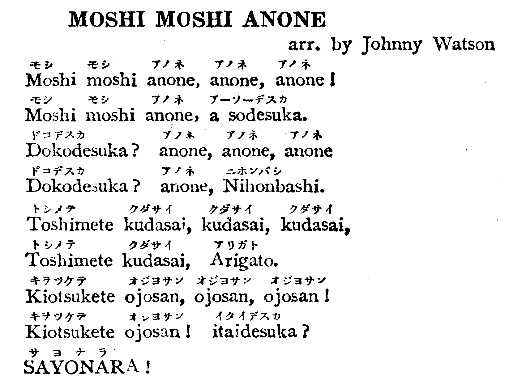 Moshi Moshi Anone The image above is part of the sheet which accompanies this 78 record. To download the full sheet, click here.