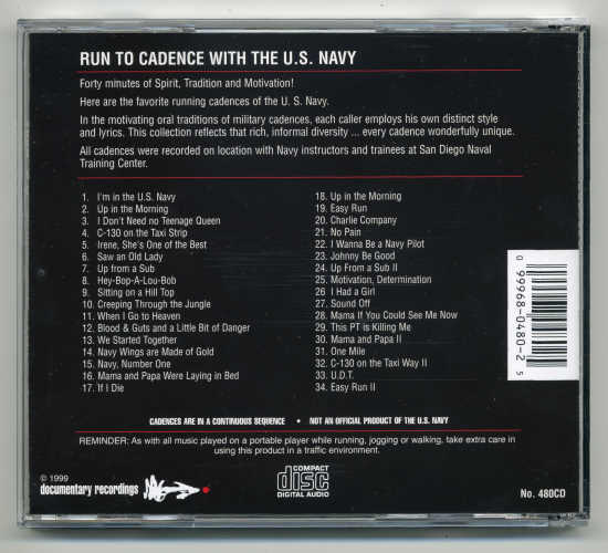 Home | Run to Cadence with the Army Airborne (1996) | Run to Cadence with the Army Infantry (1996) | Run to Cadence with the Army Rangers (1996) | Run to Cadence with the Green Berets (1996) | Run to Cadence with the US Navy (1996) | Run to Cadence with the Navy Seals (1996) | Run to Cadence with the Marines, Vol. 1 (1998) | Run to Cadence with the Marines, Vol. 2 (1998) | Run to Cadence with the Marines, Vol. 3 (1998) | Run to Cadene with the US Army Airborne Rangers (1998) | Run to Cadence with the Recon Marines (1998) | Run to Cadence with the US Armed Forces (1998) | Run to Cadence with the US Navy, Vol.2 (2004) | What's New | Contact Us