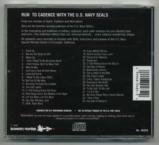 Home | Run to Cadence with the Army Airborne (1996) | Run to Cadence with the Army Infantry (1996) | Run to Cadence with the Army Rangers (1996) | Run to Cadence with the Green Berets (1996) | Run to Cadence with the US Navy (1996) | Run to Cadence with the Navy Seals (1996) | Run to Cadence with the Marines, Vol. 1 (1998) | Run to Cadence with the Marines, Vol. 2 (1998) | Run to Cadence with the Marines, Vol. 3 (1998) | Run to Cadene with the US Army Airborne Rangers (1998) | Run to Cadence with the Recon Marines (1998) | Run to Cadence with the US Armed Forces (1998) | Run to Cadence with the US Navy, Vol.2 (2004) | What's New | Contact Us